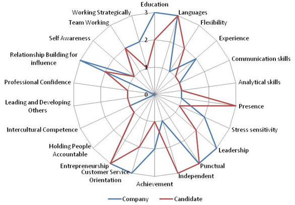 De doelstellingn va onze aanpak is het koppelen van de vereisten van de klant met de geschikte kandidaat. De vergelijking tussen de klant en de kandidaat wordt op onderstaande manier uitgebeeld: